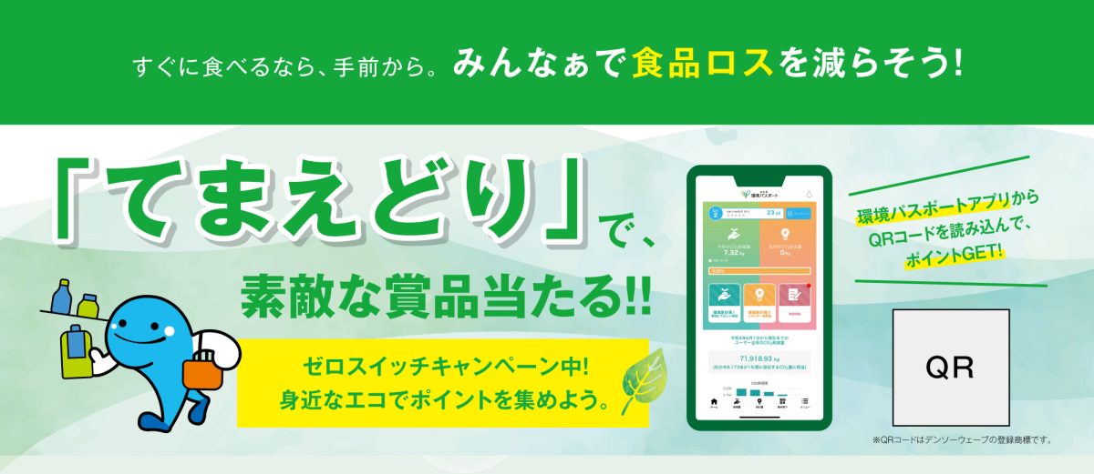 協賛店舗内に掲示している手前取りPOPのQRコードを、環境パスポートアプリで読み取ると2ポイント付与します。QRコードの読み取りは1日1回までとなっております。キャンペーン期間中、毎日行えば最大122ポイント獲得が可能!