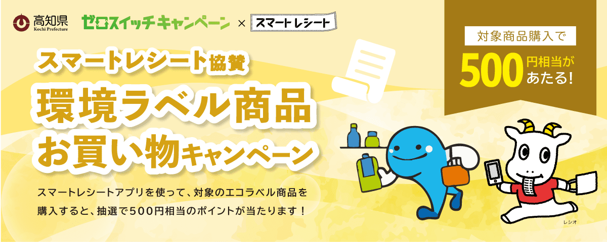 この協賛キャンペーンとして、こうち生協のコープよしだ店・コープかもべ店で環境ラベルがついた対象商品を購入すると、デジタルギフト500円相当のポイントが50名にあたるキャンペーンが開催されます。