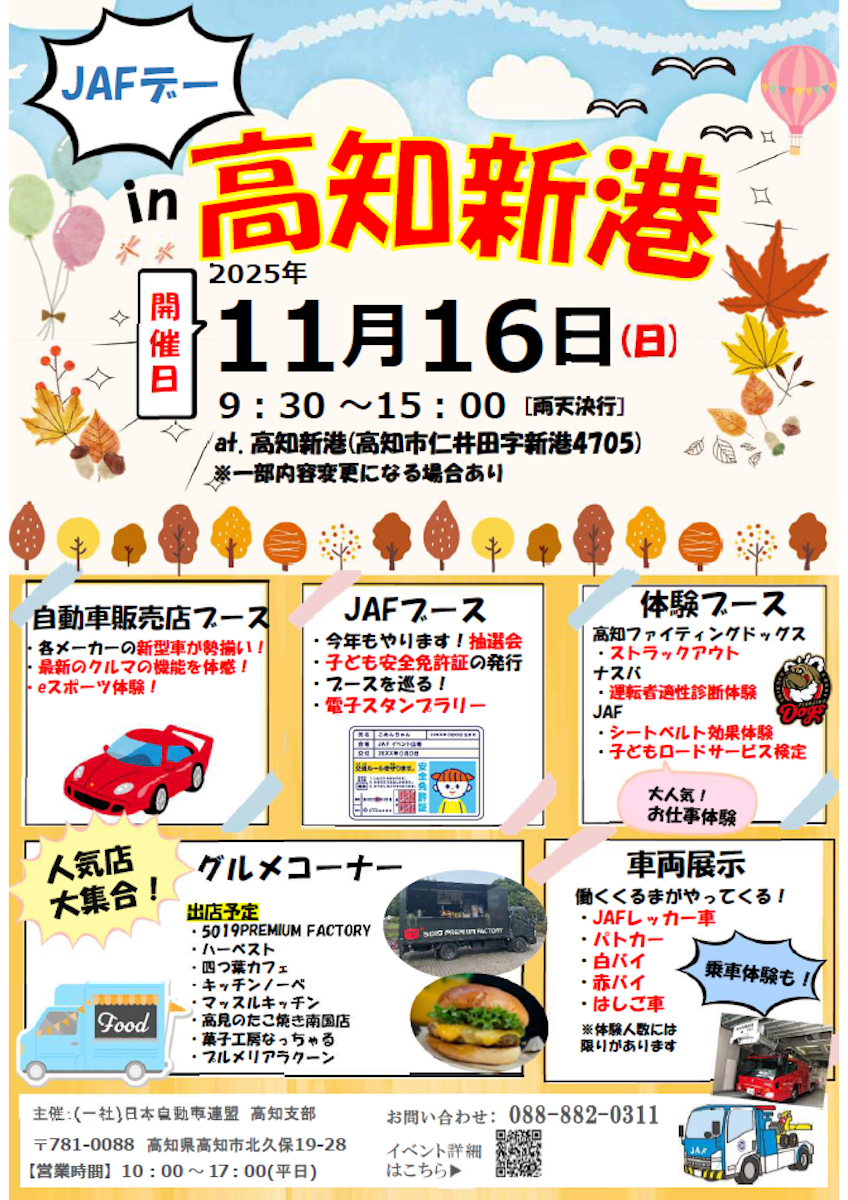 ハンバーガー、唐揚げ、スイーツなど人気のキッチンカー・屋台が揃う「グルメブース」はじめ、「自動車販売店ブース」では各メーカーの新型車が勢揃い!