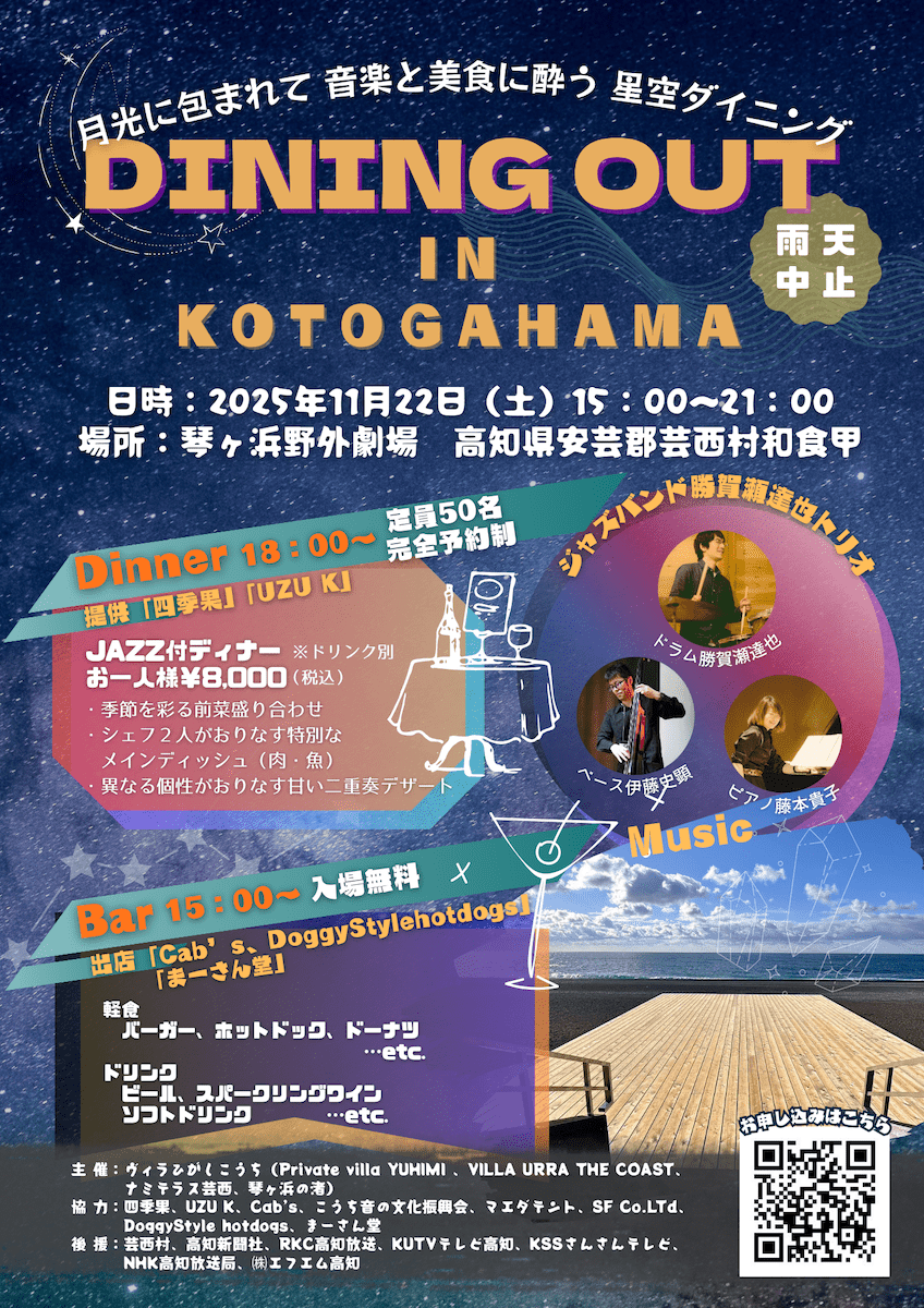 また野外劇場の展望スペースではハンバーガーやドーナツなどの出店があり、琴ヶ浜を感じながら贅沢な時間を満喫できる。