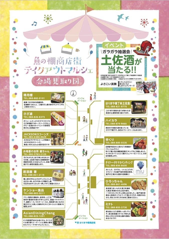 先日行われた「魚の棚商店街テイクアウトマルシェ」が好評につき第二弾を開催! 江戸時代から歴史がある高知最古の商店街「魚の棚商店街」に高知の美味しいテイクアウトグルメが集結! さらに、1回の会計で1000円以上購入した方に土佐酒が当たる「ガラガラ抽選会」や、「よさこい演舞」などのイベントも開催予定。ゴールデンウィークの始まりは、感染症対策をしっかりして魚の棚商店街にレッツゴー♪