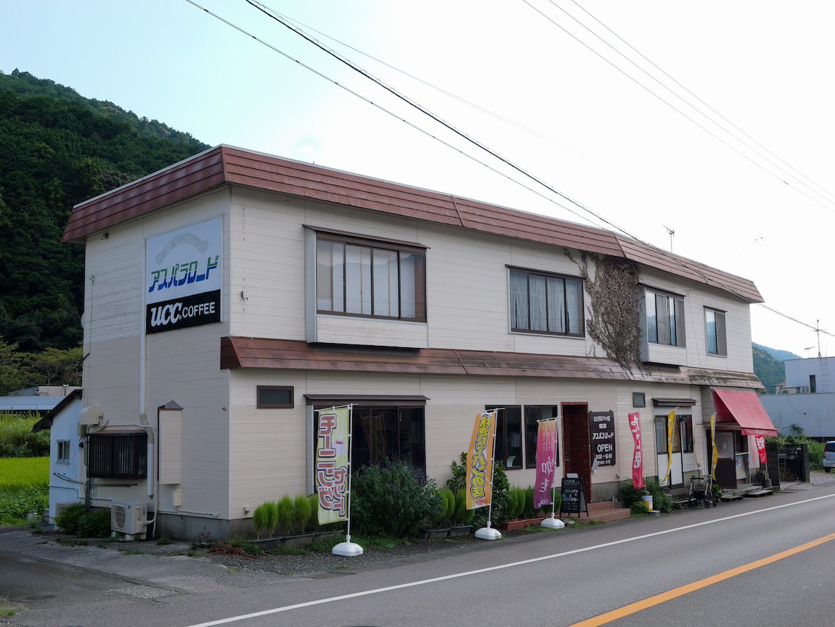 道の駅やミュージアムと香美市の観光スポットが集まる駐車場のすぐ隣にある「喫茶アスパラロード」。