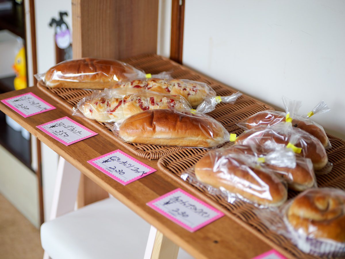 入り口すぐにパンの陳列棚があり、コッペパンやベーグル、食パンとどこか懐かしい風貌のパンが並びます。
