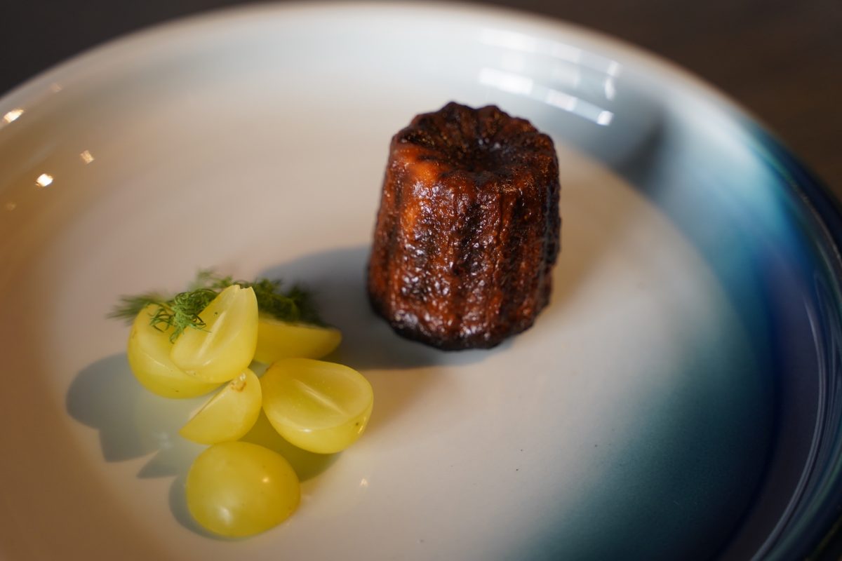 コース料理は肉料理やパスタ、ピザなどボリューム満点。さらに、焼きたてのカヌレは「外ザクッ、中モチッ」のこだわりの逸品。