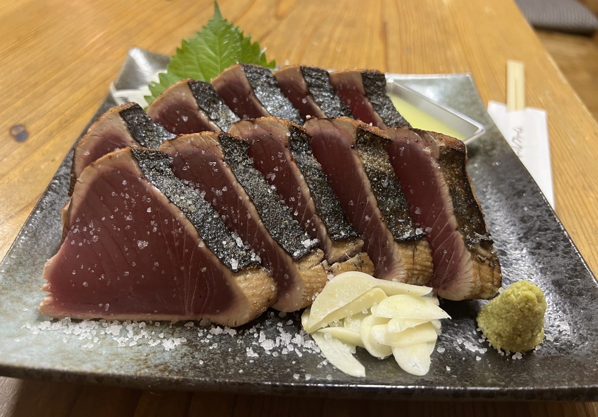 地場ブランドの肉料理や地元漁師から直接仕入れる鮮魚がズラリと並ぶ。市場から直送された新鮮な生カツオを使用し、素材本来の旨みと香りをそのままお届け!