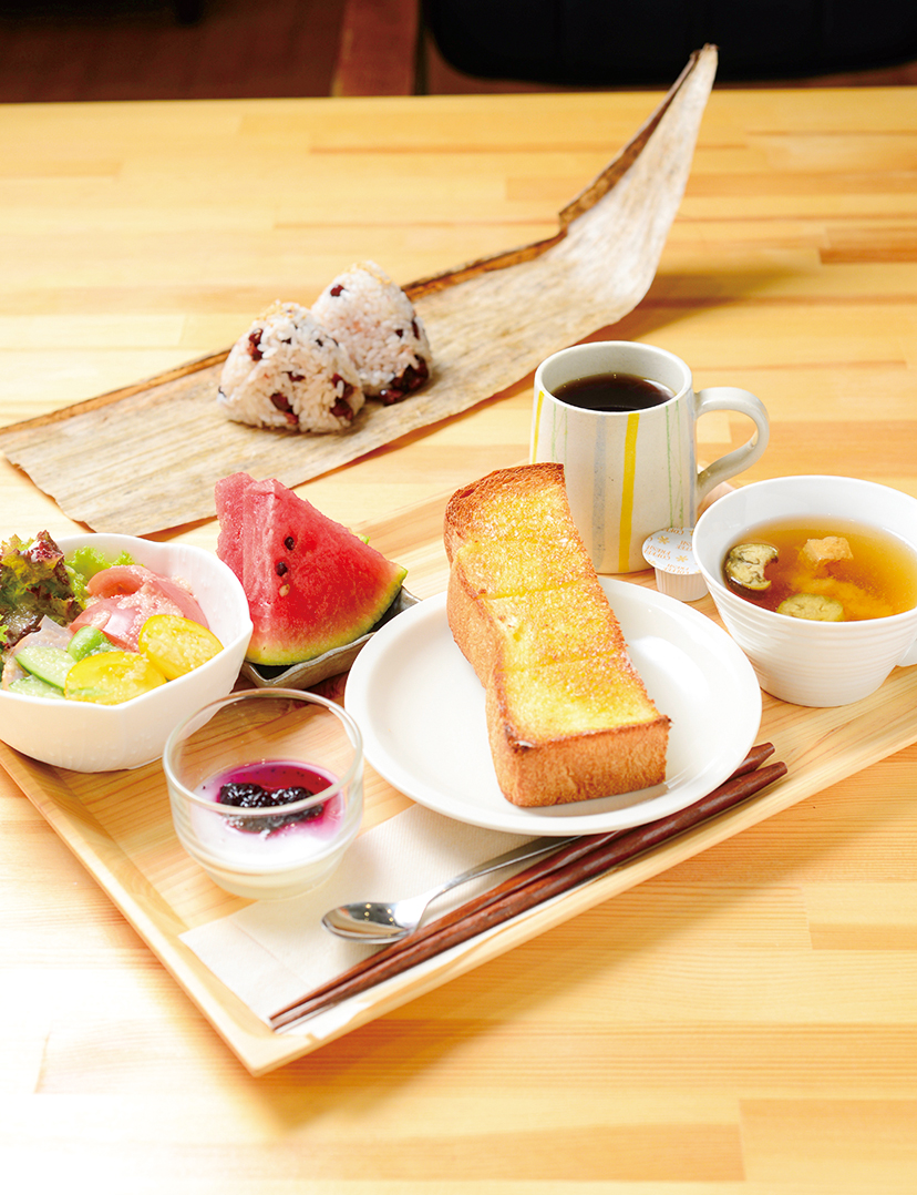 「旧横畠小学校」を利用した「 山笑ふ横畠 集落活動センター」で営業されている、週末限定喫茶店「のかな」。教室の一角を利用した店内は理科室のビーカーや校長室の椅子、さらに廊下にはたくさんの本が並び、思わず懐かしい気分になってしまう。限定25食のモーニングは、トーストとおむすびの2種類が主なメニューだが、週替わりでカレーやホットサンド、近所の方が育てた土佐ジローの卵かけご飯などがいただける。また夏は「自家製の梅ジュース」、冬は「ホットジンジャーミルク」などを提供。地元のお客さんが持ち寄ったレコードを聞きながら、ゆっくりとモーニングを味わってみて。駐車場となっているグラウンドへ続く道は細い坂道になっているので、来店の際は気をつけて!