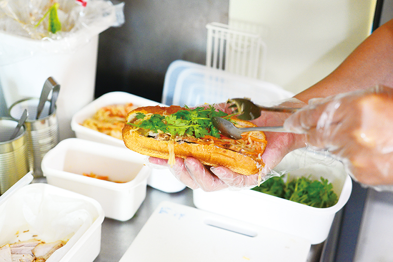 ベトナムのファストフード「バインミー」を高知に広めたいと升形商店街で営業中。バインミーとは、パンにレバーペースト、肉、なます、パクチーなどを挟んだサンドイッチ。パンは、東京恵比寿のバインミー専門店から仕入れ、使用するソースやマヨネーズはお店の手作り。ボディービルダーをしているオーナーが「体にいいもの」にこだわって提供している。