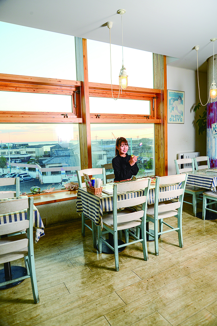 奈半利駅3階にある「トンノ」は、白と青を基調としたマリン風な店内が印象的。テーブルやバーカウンターもあり、しかも大きな窓からは海が眺められるので、家族でもデートでもどんなシーンにもぴったり♪ そんな雰囲気の中でいただけるのは、地元の幸をふんだんに使ったオリジナル地場イタリアンメニュー。奈半利町産のゆず豚や深層ナスなどを使ったピザやパスタをはじめ、夜には季節限定メニューも用意。見て食べて奈半利町の魅力をご堪能あれ!