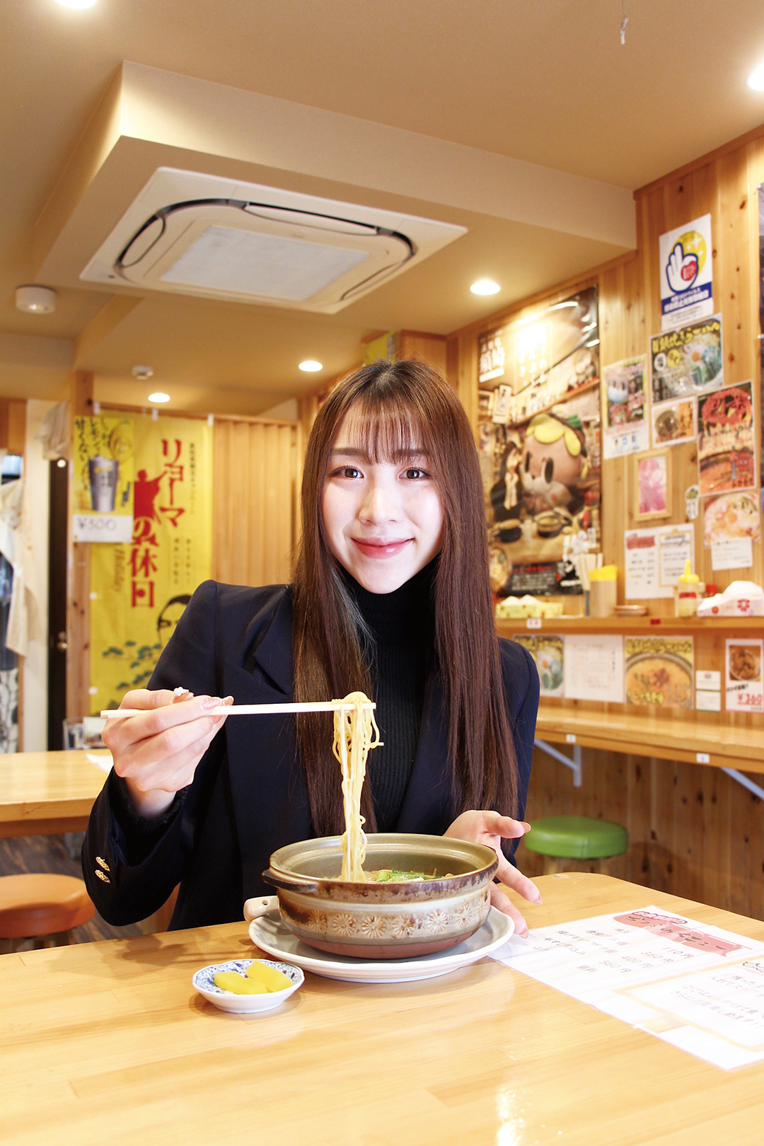 高知県内に新しくできたラーメン店や人気店は、必ずチェックしているというHALUさん。中でも「谷口食堂」の「鍋焼きらーめん」は、発祥の地である須崎市の味わいを高知市中心街で堪能できる、おすすめ店なんだとか。「このお店の鍋焼きラーメンは本格派なんですよ!」と言うだけあって、鶏ガラや豚足、日高昆布や数種類の野菜などをじっくり煮込み、老舗醤油醸造場の醤油と合わせたスープはあっさりとしながらもコク深く、親鳥やちくわなどの具材、硬めに茹でられたたまご麺と相性抜群だ! 「卓上にあるカレー粉をスープに加えれば、味変も楽しめます」と話すHALUさん。イチオシの「こがしニンニク」をはじめ、「ゆず」や「塩」、「激辛」などのメニューもあるので、その日の気分で色々な味わいの「鍋焼きらーめん」を満喫しているそうだ。