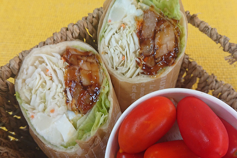 それがこちらの「トルティーヤランチ︎︎」(500円〜)。平日11時〜14時のみの提供で、トルティーヤ+ドリンクがセットになっている。それぞれの具材とレタス、キャベツをぐるっと巻いており、野菜もたっぷり! WAXペーパーで巻いているので、手軽で食べやすいのも嬉しいポイント♪