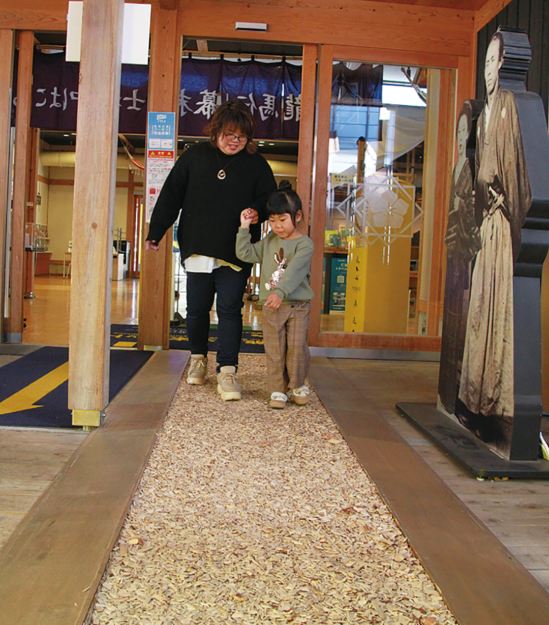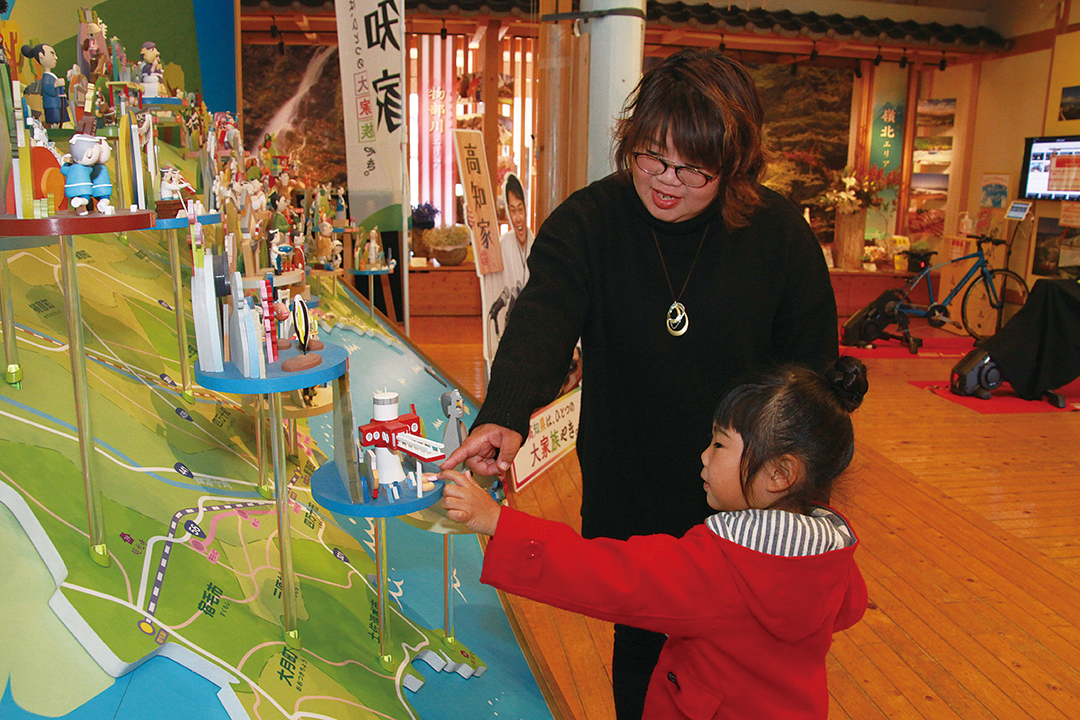 足が届けば子どももOK。地域紹介コーナーでは各エリアの様々な情報を紹介。ゆるキャラがいたり、おいしそうなグルメがあったりと情報満載。知らなかった高知を知って、行きたい場所が増えるはず。