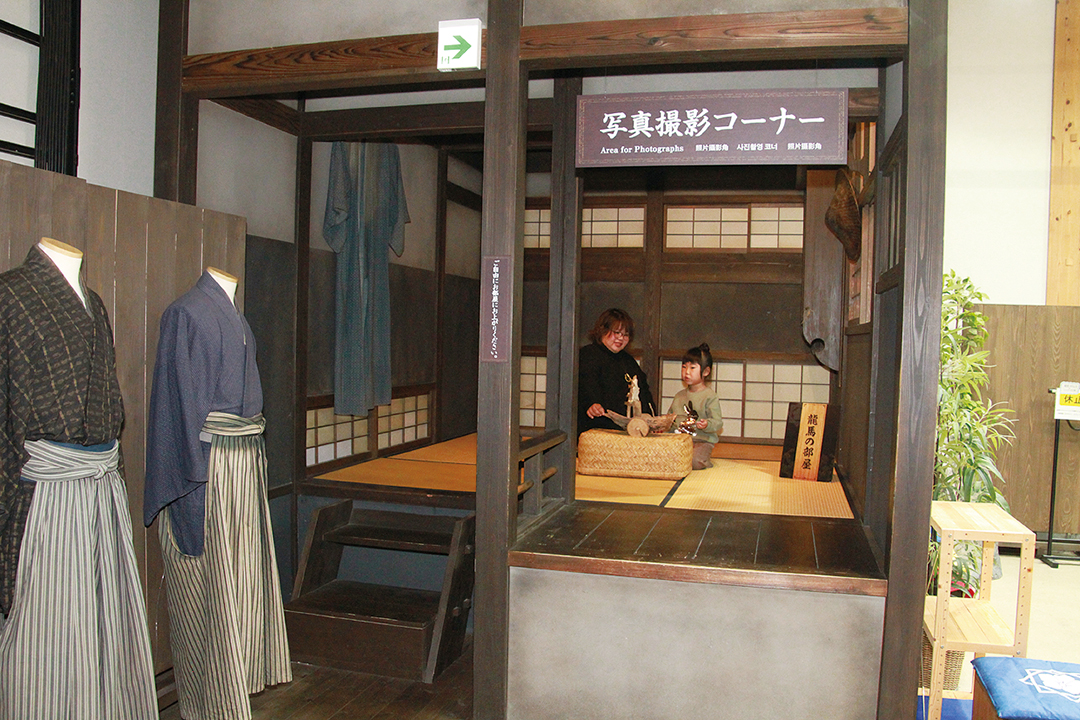 高知駅を出てすぐ目の前にある「とさてらす」。建物の南側には有料駐車場があるので、アクセスも便利。「地域紹介コーナー」では高知を7つのエリアに分け、観光、グルメ、アウトドア体験などの情報を紹介。気になる所はあったかな?総合案内カウンターにはおもてなしスタッフが常駐。観光や宿泊などの旅に関する要望や困りごとなど、気軽に対応してくれるよ。高知の風景がモニターに映り、ロードバイクを漕いでサイクリング体験。道に合わせて負荷もかかるので、とってもリアル。県内各市町村の名所や特産品などを、かわいらしいフィギュアで紹介。「あ、ここ行ったことあるね」と話も弾む♪館内には茶屋コーナーも。お菓子やおむすびのセットの提供や、「とさ屋」で購入したものを食べることもできる。※メニューは月替わりいただいたのは「土佐の紅茶」、「ブルーベリーのパウンドケーキ」と「ココアカップケーキ」のお菓子セット。「北川村のつぶつぶゆずジュース」も。※メニューは月替わりまるでどこかへ旅行したような1枚が撮れる「龍馬茶屋」の外観。幕末当時の雰囲気を感じられる撮影セットを再現した建物は必見。特産品やお土産が並ぶ「とさ屋」。「県外のお友達に送ろうか、これは自分でも欲しいなー」買いたいものがたくさんあって困っちゃう。ウッドチップが敷き詰められた「とさてらす」と「龍馬伝」幕末志士社中をつなぐ通路。感触や香りを感じながらセラピーロードを歩いてみて。高知名産カツオの一本釣りを疑似体験できるコーナーも。意外とずっしり重くてびっくり。親子で協力して釣りあげてみよう!龍馬の部屋を再現したスペース。お気に入りの服で撮影するのも楽しいかも。(現在衣装の貸出は中止、撮影のみOK)