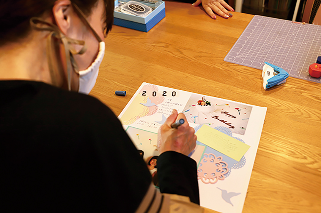 「世界に1つだけのアルバム」のスクラップブッキングは、写真を切り貼りし、デコレーションアイテムなどと一緒にメッセージを添えて装飾していく。教えてくれるのは、写真を通じてたくさんのママ達と思いを共有しているアルバムアドバイザーの太田先生。