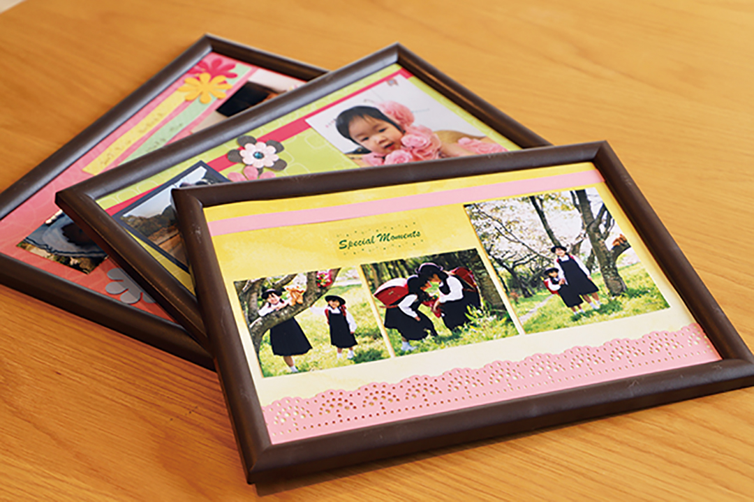 やってきたのはこちら! 先生の自宅2階で開催されているスクラップブッキング教室。おしゃれで明るく癒されるアットホームな雰囲気。無地や色付き、柄の入った台紙もあり、好きな物を選べる。初心者でも専用のアイテムを使って作れば、うまく仕上がるので大丈夫。先生自身も2人の子ども達に伝えたい、残したい思いを綴りながら、未来応援アルバムを日々作り続けている。写真を切ってあげることで、メインとなる人や物が引き立つ! トリマーを使い型を抜く作業は、先生にお任せすることも。テーマを決めて写真を持参し、相談しながら自由に進められるレッスン。予約時にイメージを伝えておくとスムーズだよ♪イメージに合わせたペーパー、ボーダーデコレーションや、アクセントにはステッカーもチョイス♪ 子ども目線って素敵だね♡教室で使用されている台紙やアイテム、道具は全てクリエイティブメモリーズの物で、色褪せず、ずっときれいに残せるのが魅力。誕生日の記念写真をデコレーションしていく小夏ちゃん♪ 楽しさが伝わる1ページに。作業を手伝いつつ、ママも隣で作成できるのも嬉しい。「できたー♪」心に残る素敵な思い出作品の完成! 「楽しかった、また作りたい♪」とコニコ笑顔。弟の匠君も遊びながら待っていてくれたね。 子どもはお母さんの手書きの言葉を見ると、心が和むはず。メッセージや日付を添えて思い出をギュッと閉じ込めて♡フォトフレームタイプ(1000円)はギフトにも飾りにもピッタリ。他にも、日々の写真を手軽に整理できるオリジナルアルバム作りなど多種あり。忙しく自分で写真を貼る時間がないという方に朗報。撮り貯めた写真をアルバム1冊に可愛くまとめてくれる写真整理の相談もOK!