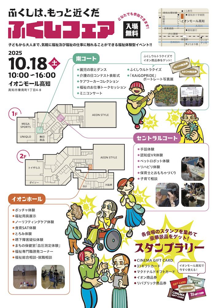 10月18日(土)の10:00〜16:00に、イオンモール高知にて開催される「ふくしフェア2025」。
