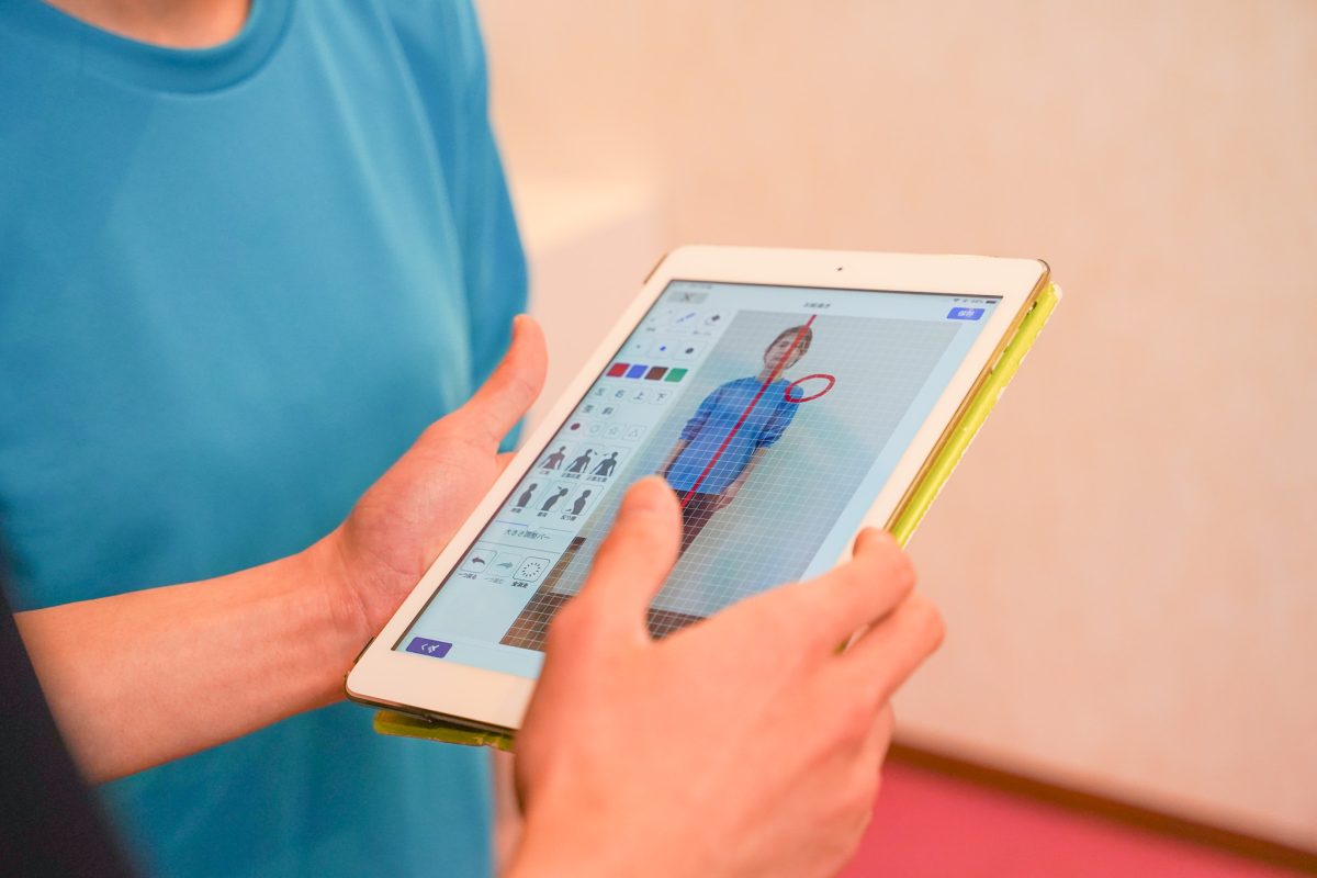 次に、専用iPadで姿勢を撮影して、現状の把握・改善点を一緒に確認してくれます。